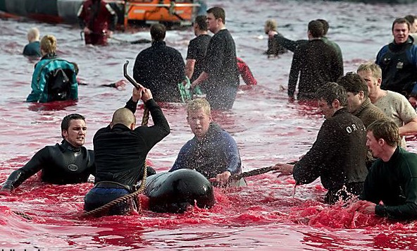 ABER was ich nicht verstehe ist, wie man Tiere in eine Bucht treibt und sie dann im Rahmen eines großen Schlachtfestes auf brutalste Art und Weise zum bloßen Vergnügen ermordet. Als ich die Bilder das erste Mal sah, musste ich fast kotzen, das Gefühl erinnerte mich daran, als ich das erste Mal ein Konzentrationslager besuchte und sah, was dort mit den Menschen veranstaltet wurde. Genau das ist es nämlich, es ist ein Holocaust an unschuldigen Tieren. Und das Ganze findet ja nicht in irgendeinem Terrorregime-Staat oder auf irgendeiner von Diktatoren regierten Fernostinsel statt, das Ganze passiert mitten in Europa, der "zivilisierten Welt". Wann kommt endlich jemand und tut etwas gegen die Grausamkeit des Menschen? Da wünscht man sich manchmal, dass es den bösen Gott des Alten Testaments noch gäbe!
